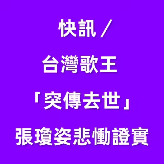 快訊/台灣歌王 「突傳去世」!張瓊姿悲慟證實!