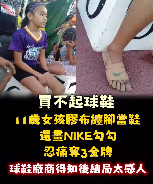 買不起球鞋,11歲女孩膠布纏腳當鞋,還畫NIKE勾勾忍痛奪3金牌,球鞋廠商得知後,結局太感人
