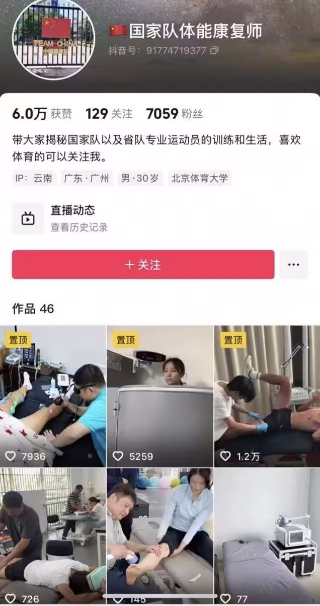 該博主自稱「國家隊體能康復師」,但沒有官方認證,IP位址也疑似有問題,因此遭到不少網友質疑,但他依然堅持自己的身份,並且回懟網友。