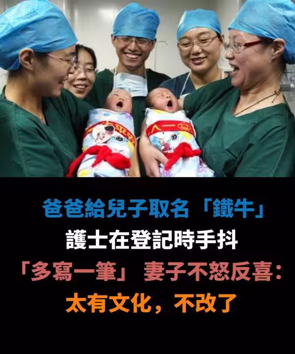 爸爸給兒子取名「鐵牛」 護士在登記時手抖「多寫一筆」 妻子不怒反喜:太有文化,不改了