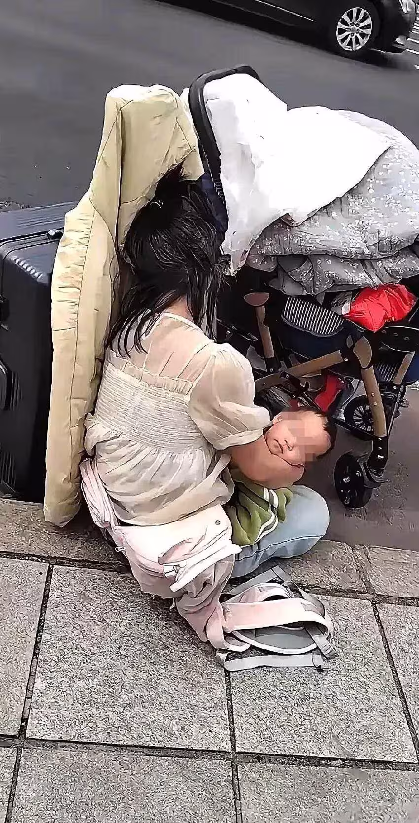 我拖著疲憊的腳步,目光看見一位年輕母親:懷裡揪著一個兩、三歲的孩子,腳邊堆著鼓囊的行李袋,仿佛從外地剛下車。