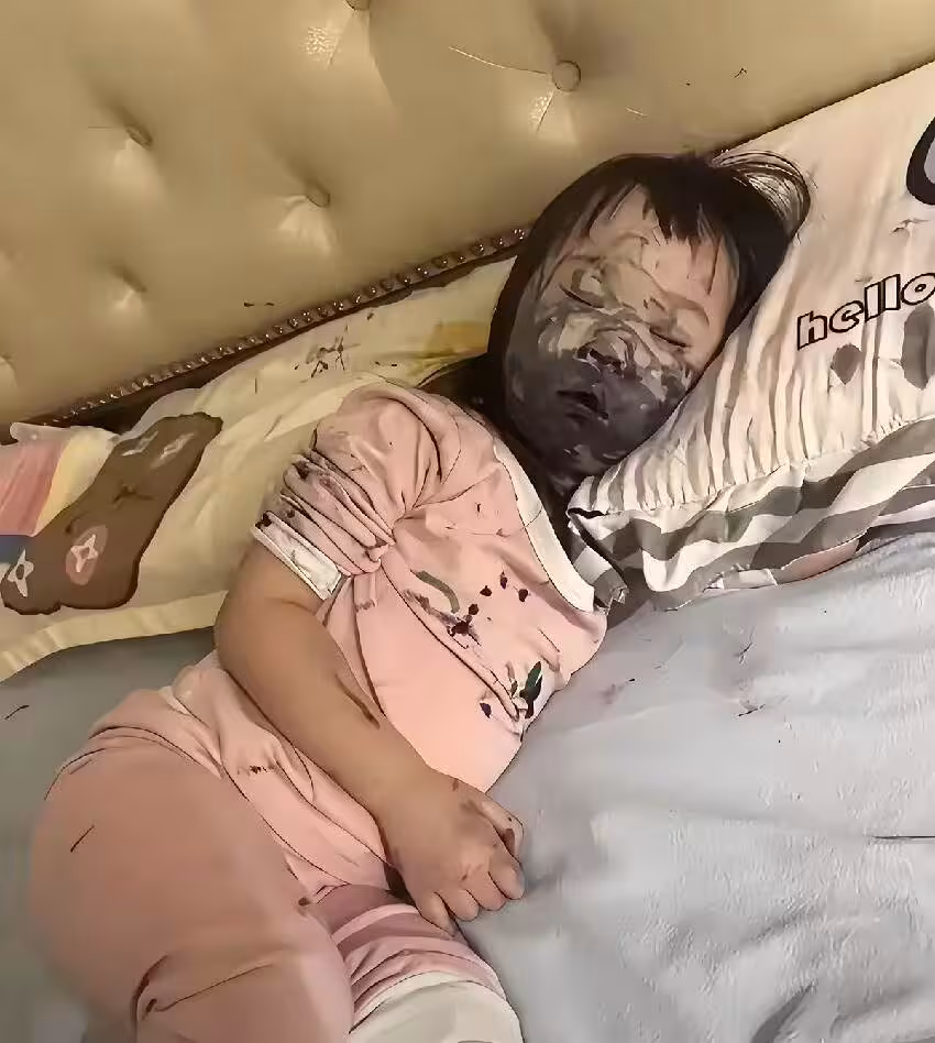 她的衣袖、胳膊甚至睡衣上都綻放著不規則的墨跡,而最讓我揪心的是——她就帶著這一身污漬睡著了,連臉都沒洗。