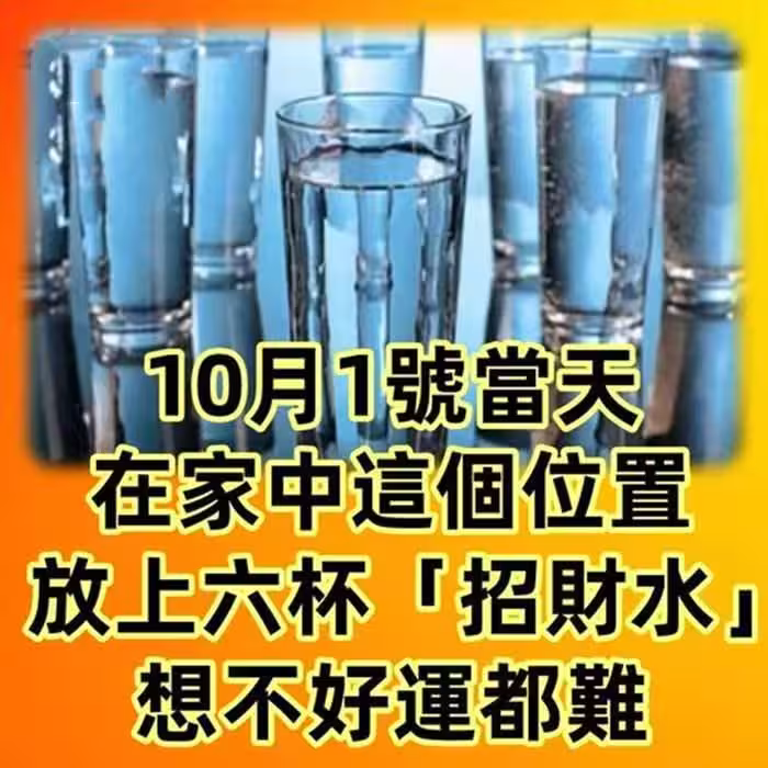 10月1號當天,在家中這個位置,放上六杯「 招財水 」想不好運都難。