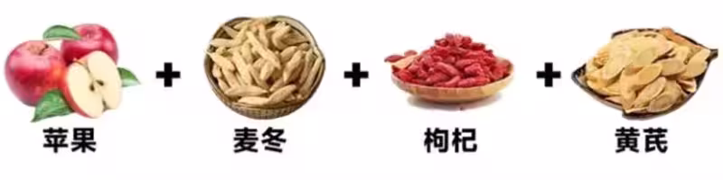 蘋果1個、黃芪5g、枸杞適量、紅棗5顆、麥冬5g。