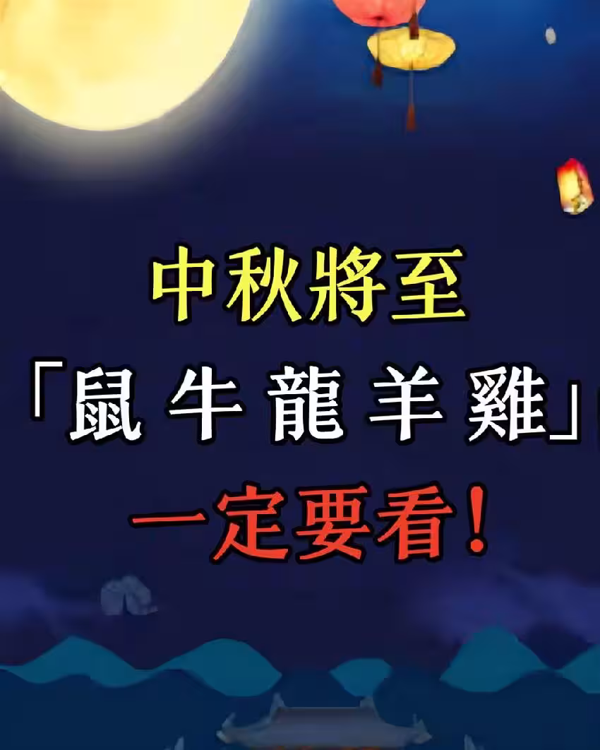 中秋將至「屬鼠 屬牛 屬龍 屬羊 屬雞」一定要看!