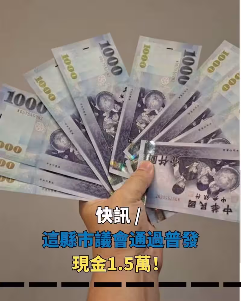 快訊 / 這縣市議會通過普發現金1.5萬!
