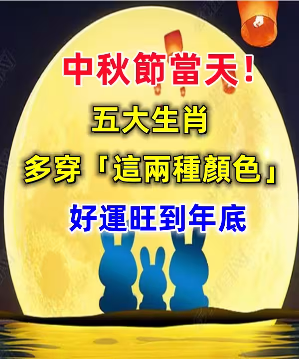 中秋佳節(10月6日,周一)是月圓人團圓的吉日,也是積聚福氣、轉化運勢的絕佳時機!根據傳統命理和五行生旺法則,以下五大生肖若在中秋節當天,特別是賞月或與家人團聚時,多穿這兩種旺運色系的衣服,將能有效吸收月圓的吉祥能量,讓好運勢一路旺到年底,財運、事業、情感皆順利!