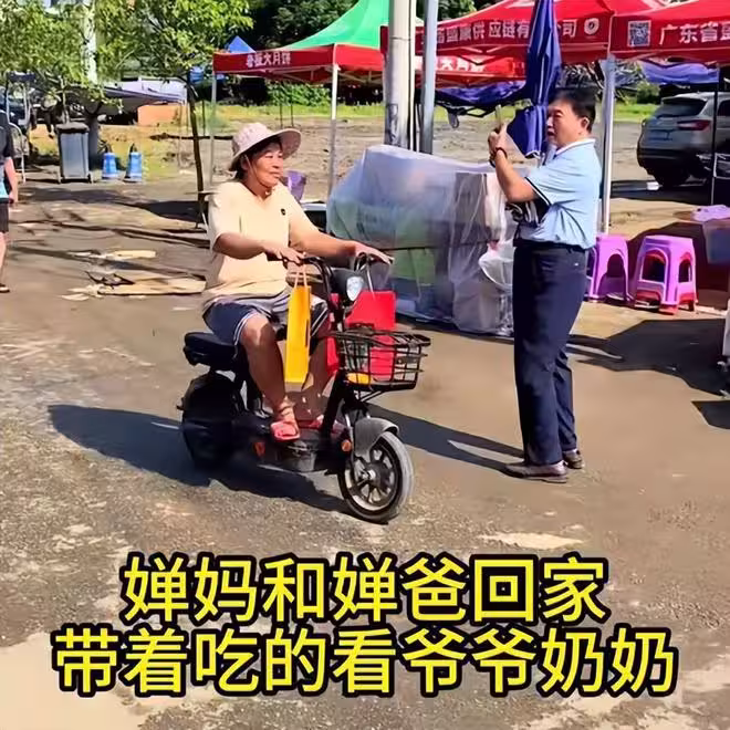 全紅嬋媽媽回爺奶家送禮,翡翠項鍊手鐲都摘下來了,騎電車很樸素