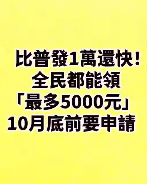 比普發1萬還快!全民都能領「最多5000元」 10月底前要申請!