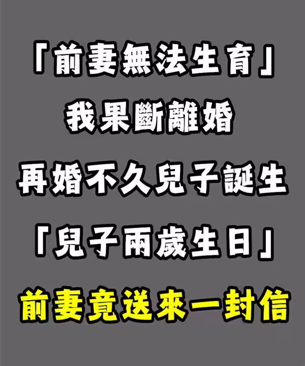 發現「前妻無法生育」我果斷離婚!再婚後「兒子兩歲生日」前妻竟送來一封信