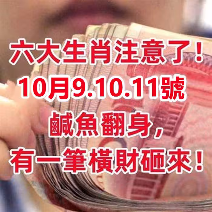 10月9.10.11號鹹魚翻身,有一筆橫財砸來的六大生肖