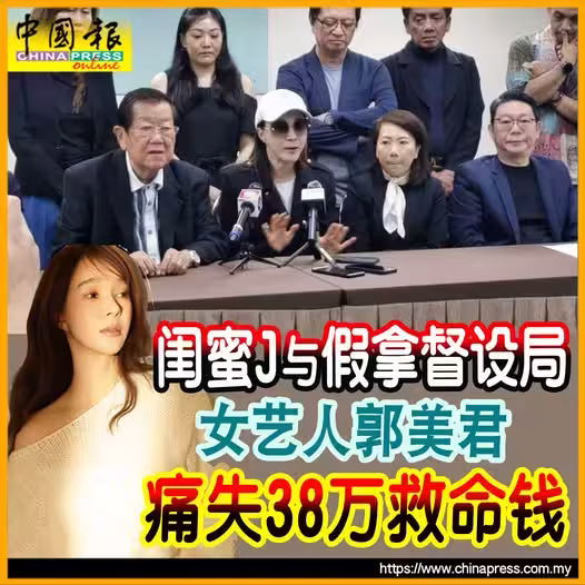 大馬女藝人郭美君控訴,相識至少9年的圈內閨蜜,疑聯同一名華裔拿督商人對她設局,後者開高價100萬令吉,僱傭她當房地產項目的獨家代言人,結果她反而痛失38萬令吉;她事後還驚悉,該商人的拿督頭銜不僅是假的,且還是一名破產人士。