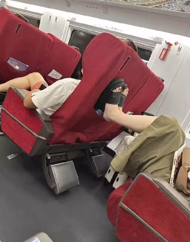 畫面在社群曝光後,引來一片撻伐:「有錢買一等座,不代表有素質。」「德是修養出來的,不是穿戴出來的。」「無德者,即便身在花叢也依舊無德。」
