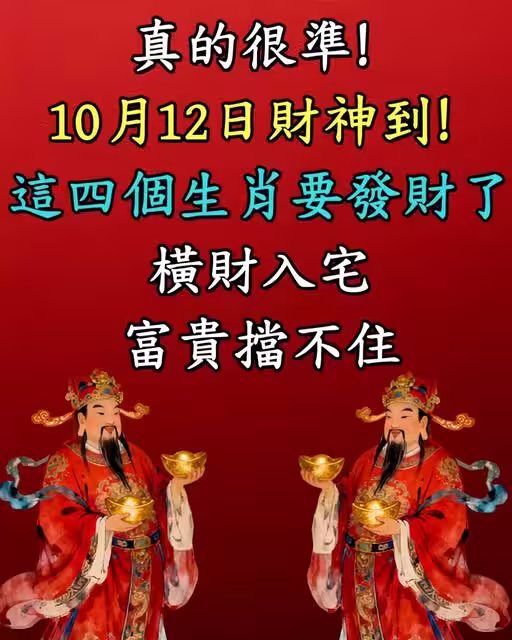 10月12日財神到!這四個生肖要發財了,橫財入宅,富貴擋不住!