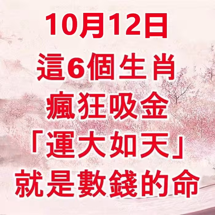 10月12日,這6個生肖瘋狂吸金「運大如天」就是數錢的命.