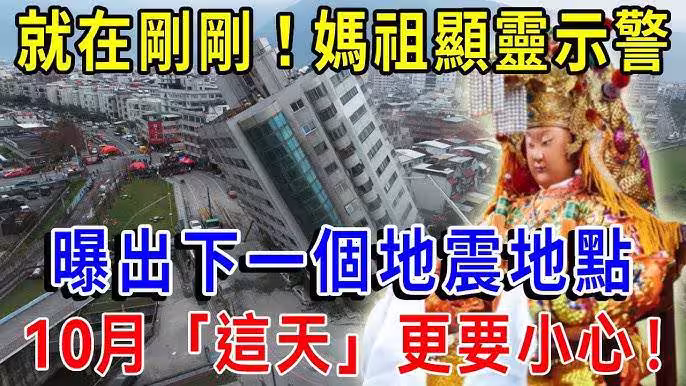 就在剛剛!媽祖顯靈發出緊急通知,下一個「大地震地點」!10月「這天」更要小心