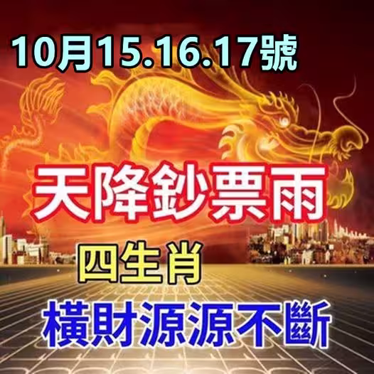 10月15.16.17號天降鈔票雨 ,四生肖橫財源源不斷!