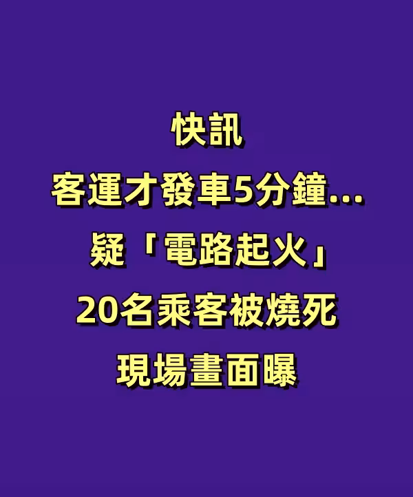 快訊/客運才發車5分鐘...疑「電路起火」20名乘客被燒死 現場畫面曝.