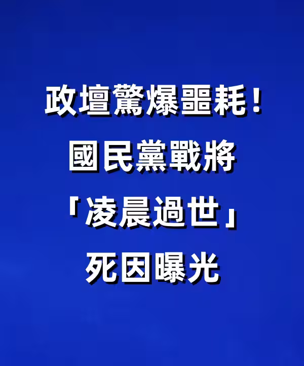 快訊 / 政壇驚爆噩耗!!國民黨戰將「凌晨過世」死因曝光