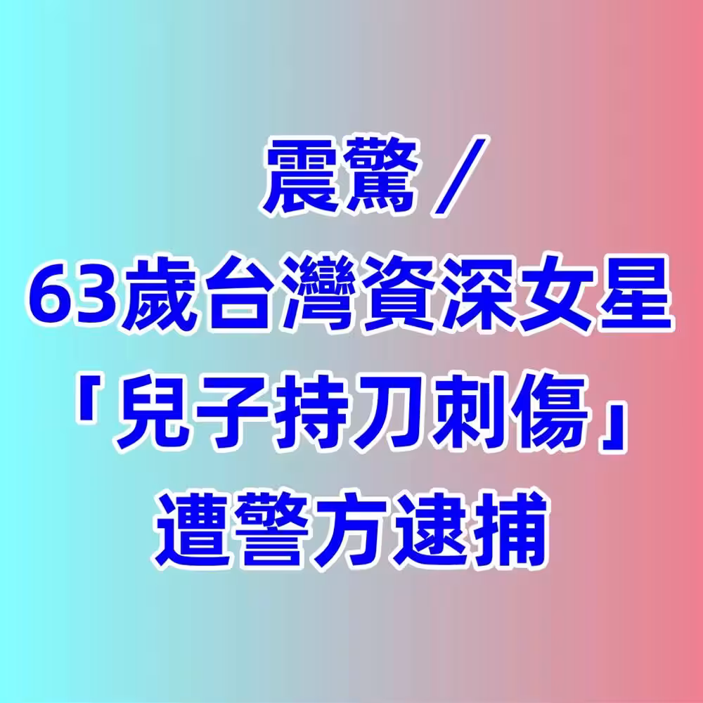 震驚/63歲台灣資深女星「兒子持刀刺傷」 遭警方逮捕