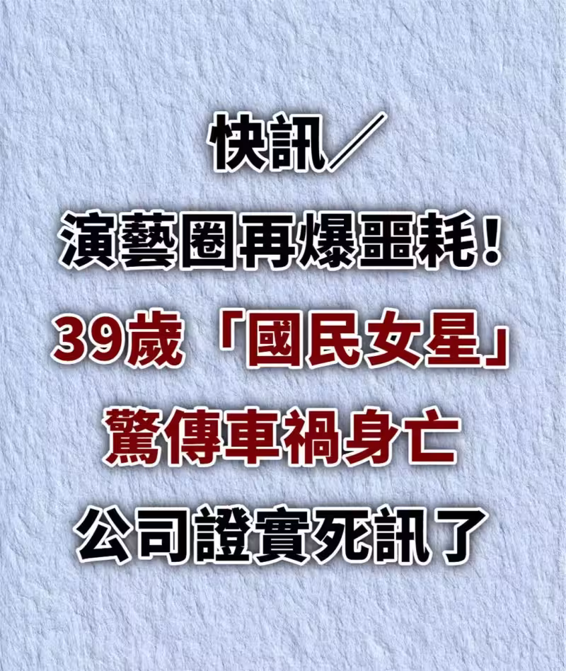 演藝圈再爆噩耗!39歲「國民女星」驚傳交通事故過世,公司證實死訊了