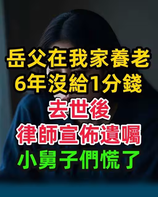 岳父在我家養老6年沒給1分錢,去世後律師宣布遺囑,小舅子們慌了