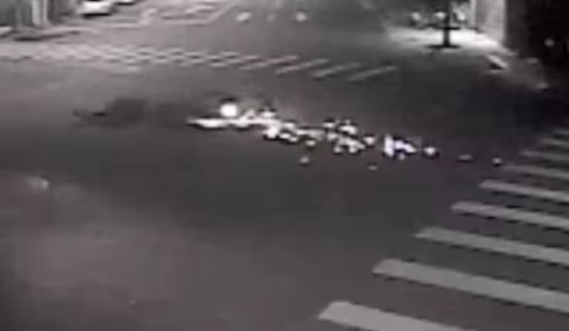 監視畫面中僅可見林男的影子,推測他穿越馬路時違規沒走在斑馬線上。