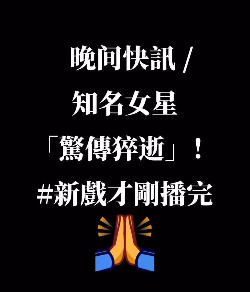 晚間快訊/知名女星「驚傳猝逝」! #新戲才剛播完。