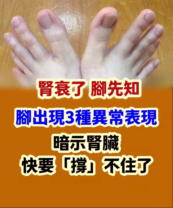 腎衰了,腳先知!!腳出現3種異常表現,暗示腎臟快要「撐」不住了