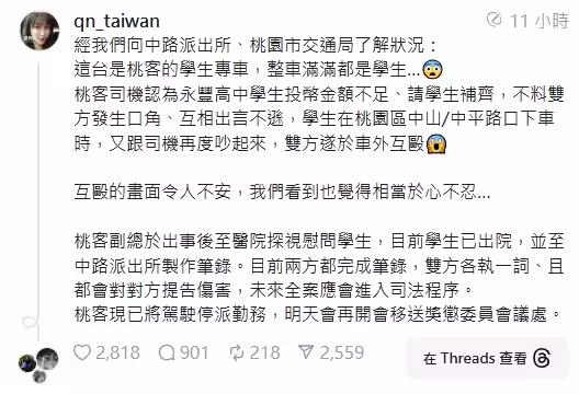 現場目擊者拍攝的畫面相當怵目驚心,只見司機與學生在馬路邊扭打,拳腳相向難分難解。