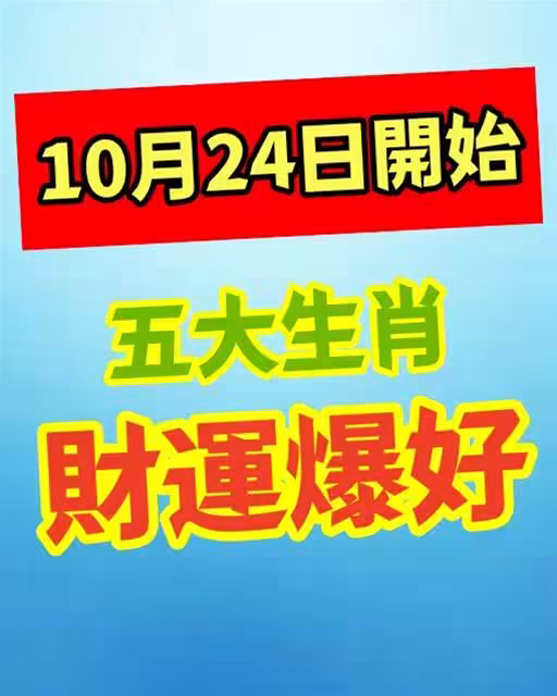 10月24日開始,五大生肖財運爆好,橫財不請自來,偏財滾滾入庫,正財節節高升,好運勢如浪潮般湧現,錢包鼓鼓,富貴臨門!