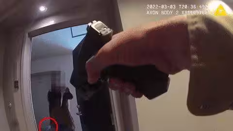 比起驚慌失措的警長,李燕倒略顯鎮定,聲音更大地喊道:「你先把你的槍放下!把槍放下!我怎麼知道你是不是入侵者!」就這樣,公寓門口,一男一女、一槍一刀、你一言我一語地對峙了兩三分鐘。