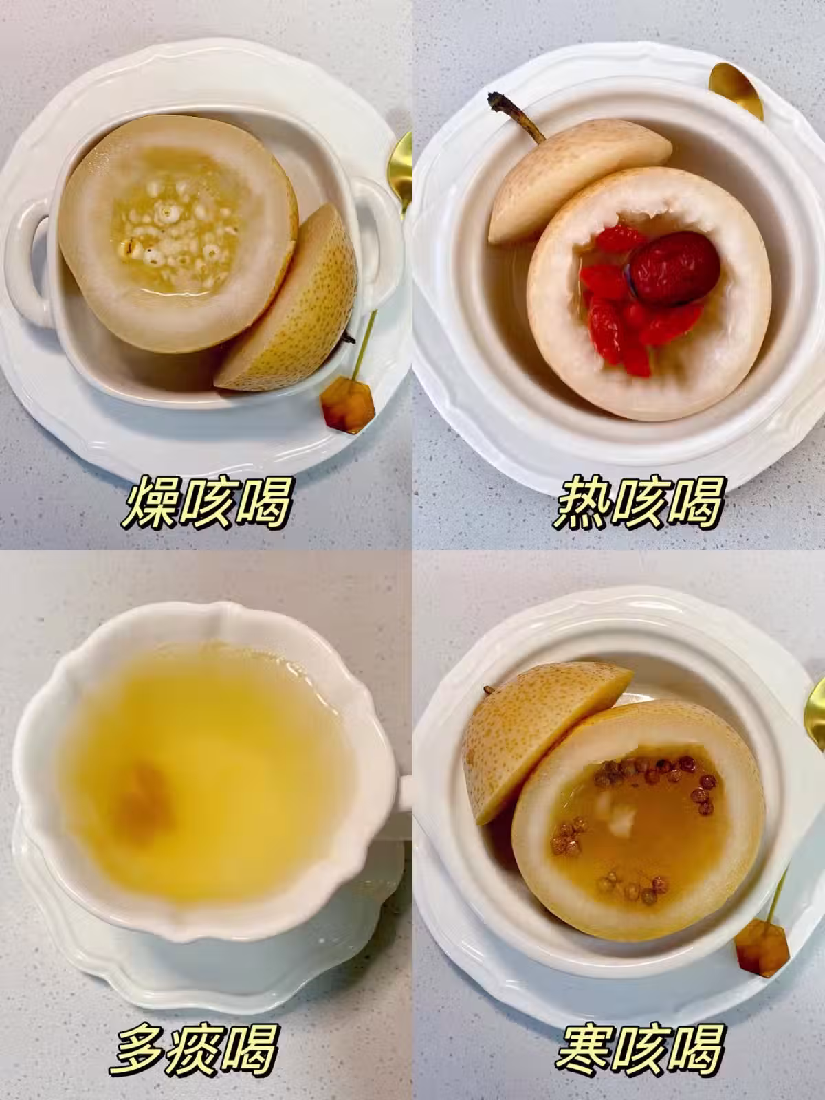 冰糖蒸雪梨:滋陰潤肺、疏散風熱、清熱止咳。