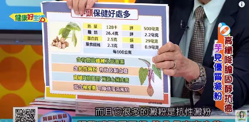 江守山也提醒,每100克芋頭的鉀含量達500毫克,屬於高鉀食物,腎功能不佳者務必謹慎食用,芋頭還含有天然抗性澱粉,有助於控血糖;且富含槲皮素,已被證實能抑制癌症風險,「芋頭不只是食物,更可以拿來當作食療。」