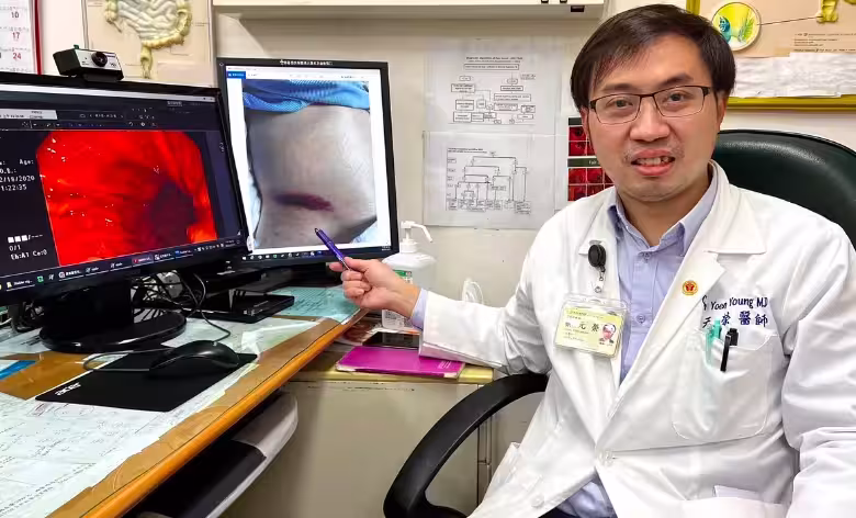 醫師抽取腹水化驗後確認是「出血性轉滲液」,胃鏡檢查也發現胃黏膜呈現蛇皮狀紅腫,顯示病人已出現肝門靜脈高壓的症狀。