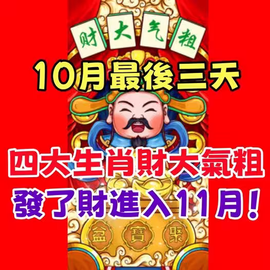 10月最後三天,四大生肖財大氣粗,發了財進入11月!!