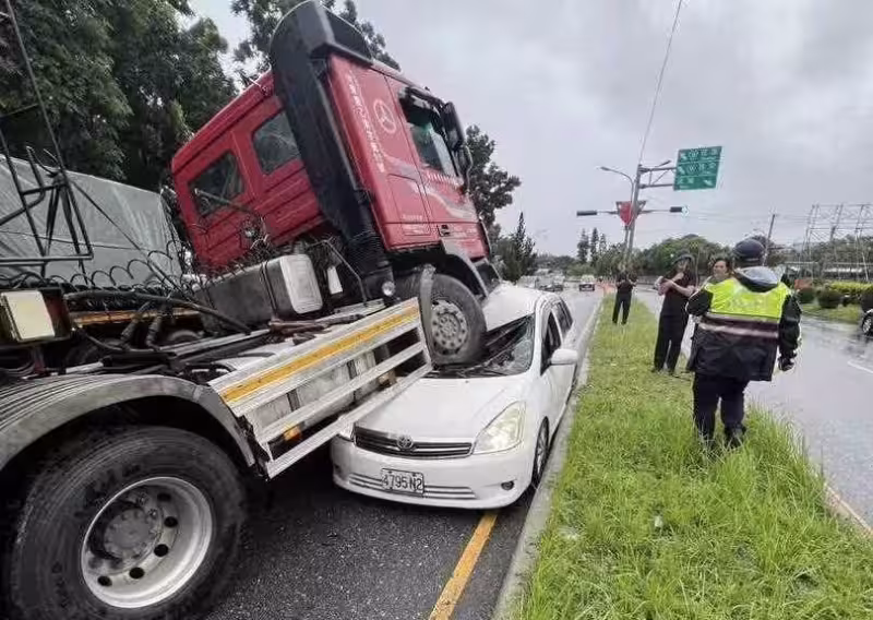 天雨路滑釀慘禍!聯結車逆向衝撞2小客車 4人受傷送醫
