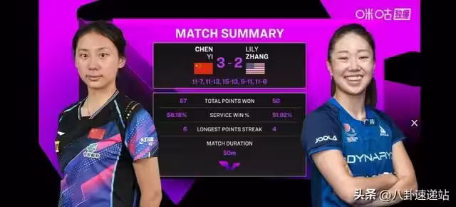 在最後一球落地時成功拿下這次比賽的勝利,還有王藝迪,她在面對日本的實力選手早田希娜時,