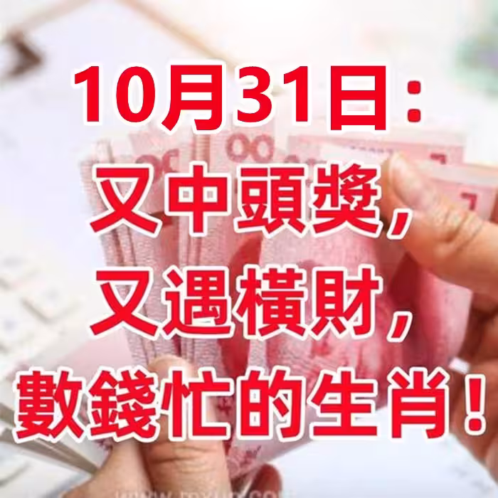 10月31日(10月最後一天)又中頭獎 ,又遇橫財,數錢忙的生肖! !