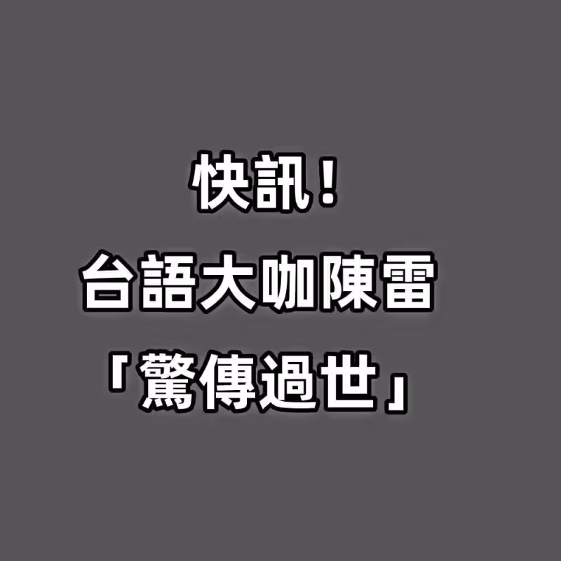 快訊/台語大咖陳雷「驚傳過世」!!