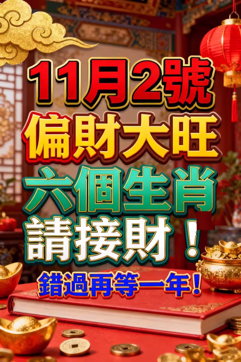 11月2號 偏財大旺,六個生肖請接財!錯過再等一年!