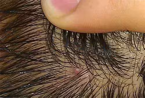 跡象二:頭皮會長小顆粒、痘痘無聊摸摸頭皮,發現好幾個地方長了痘痘,用指甲抓抓,指甲縫裡會嵌著很多骯髒的白泥、小顆粒,這是頭蟎刺激油脂分泌,又在夜間活動時把許多細菌帶入毛囊中繁殖造成的毛囊發炎、頭皮屑。