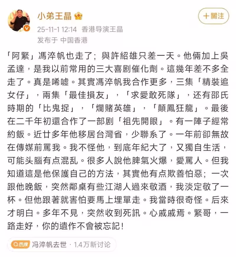 馮淬帆81歲離世留下2遺憾!曾痛批王晶:害慘很多人