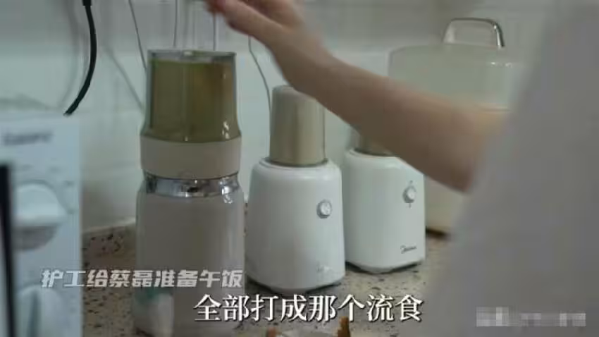 蔡磊的飲食全是蔬菜打成的糊狀,加增稠劑是為了防止嗆咳。
