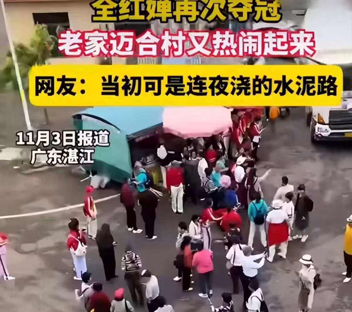 而在她奪冠之後,全紅嬋的老家又一次被觀眾們包圍了。