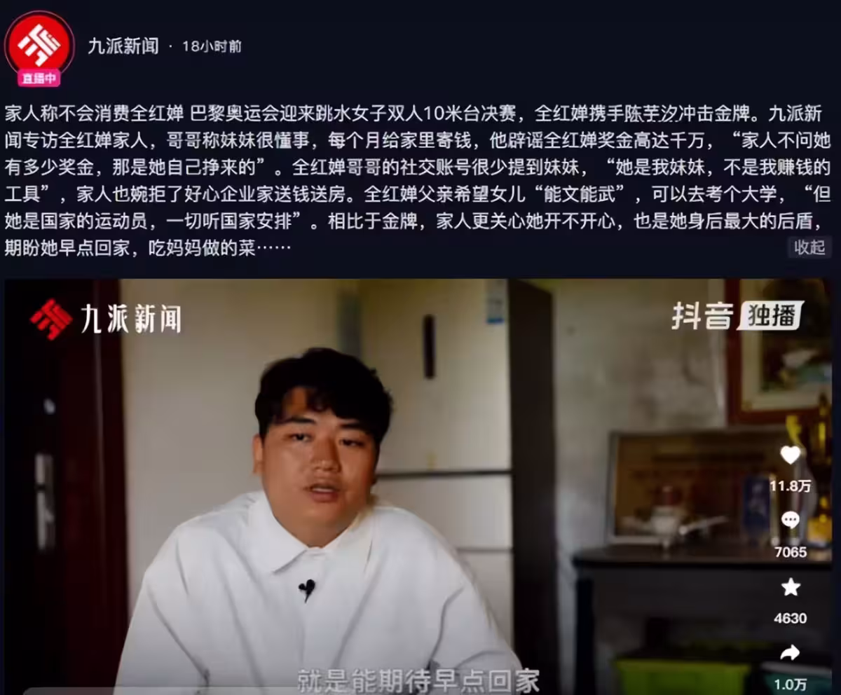 無緣冠軍一周,全紅嬋凌晨發文暴露真實現況,父親的擔心應驗了