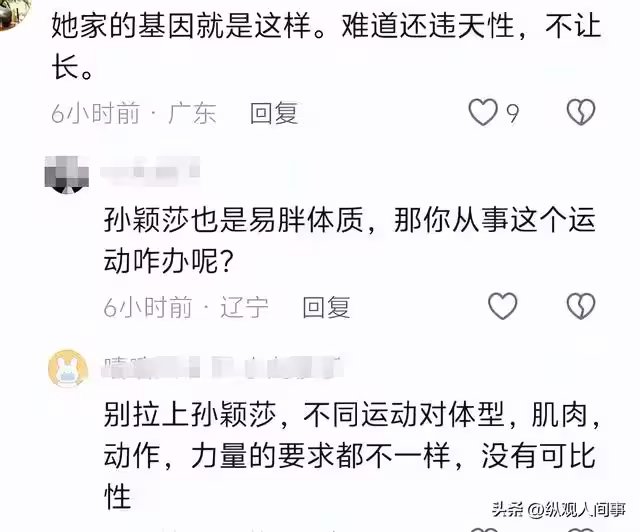 還有網友誇讚全紅蟬,表示她雖然胖了一大圈,但跳下去的動作依然連貫,並且水花也和以前一樣小。