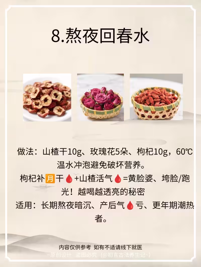 小貼士:所有方子孕婦慎用,經期避免活🩸方(如含紅花、大量山楂)。建議連續飲用不超過7天,體質調理需辨證哦