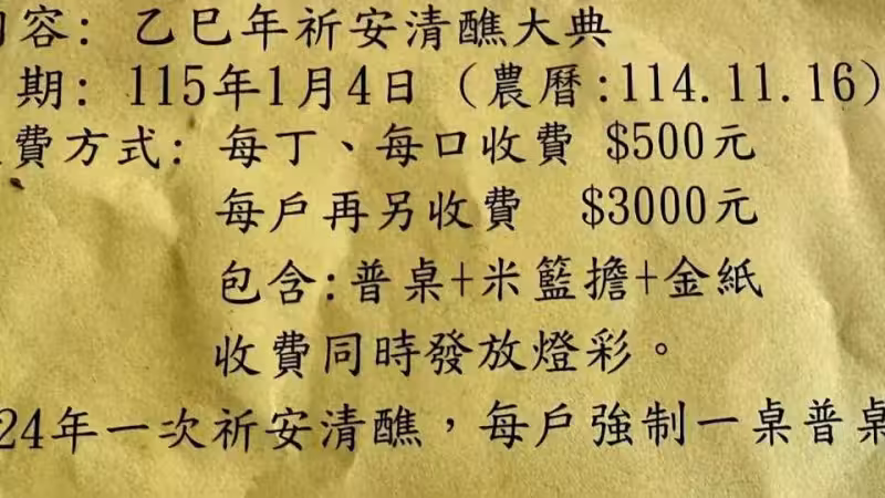 溪湖鎮24年一次清醮 廟方「強制」收普桌費引民怨