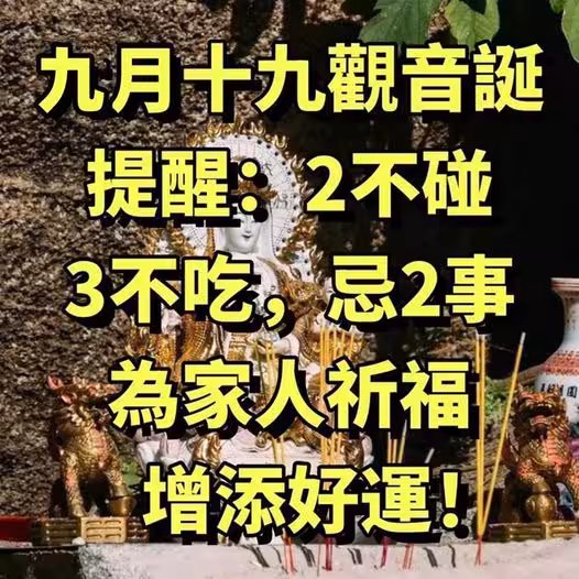 九月十九觀音誕,提醒:2不碰,3不吃,忌2事,為家人祈福增添好運.